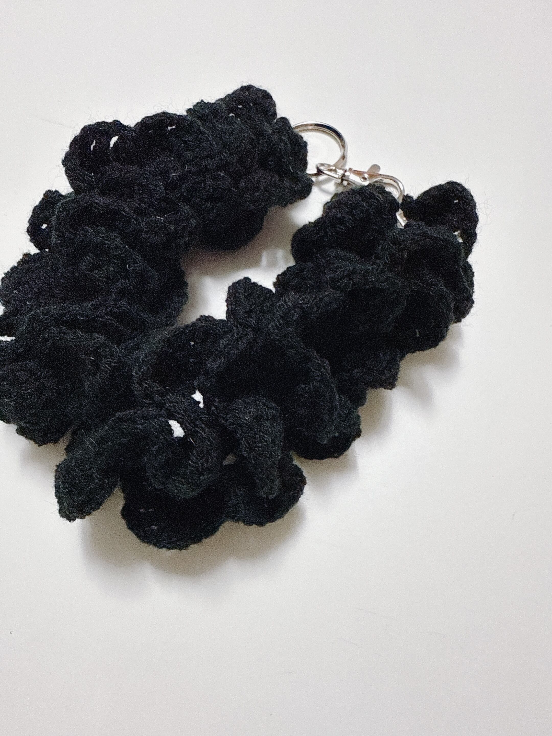 ボリュームたっぷりの手編みのフリルがポイントのフリルストラップ。