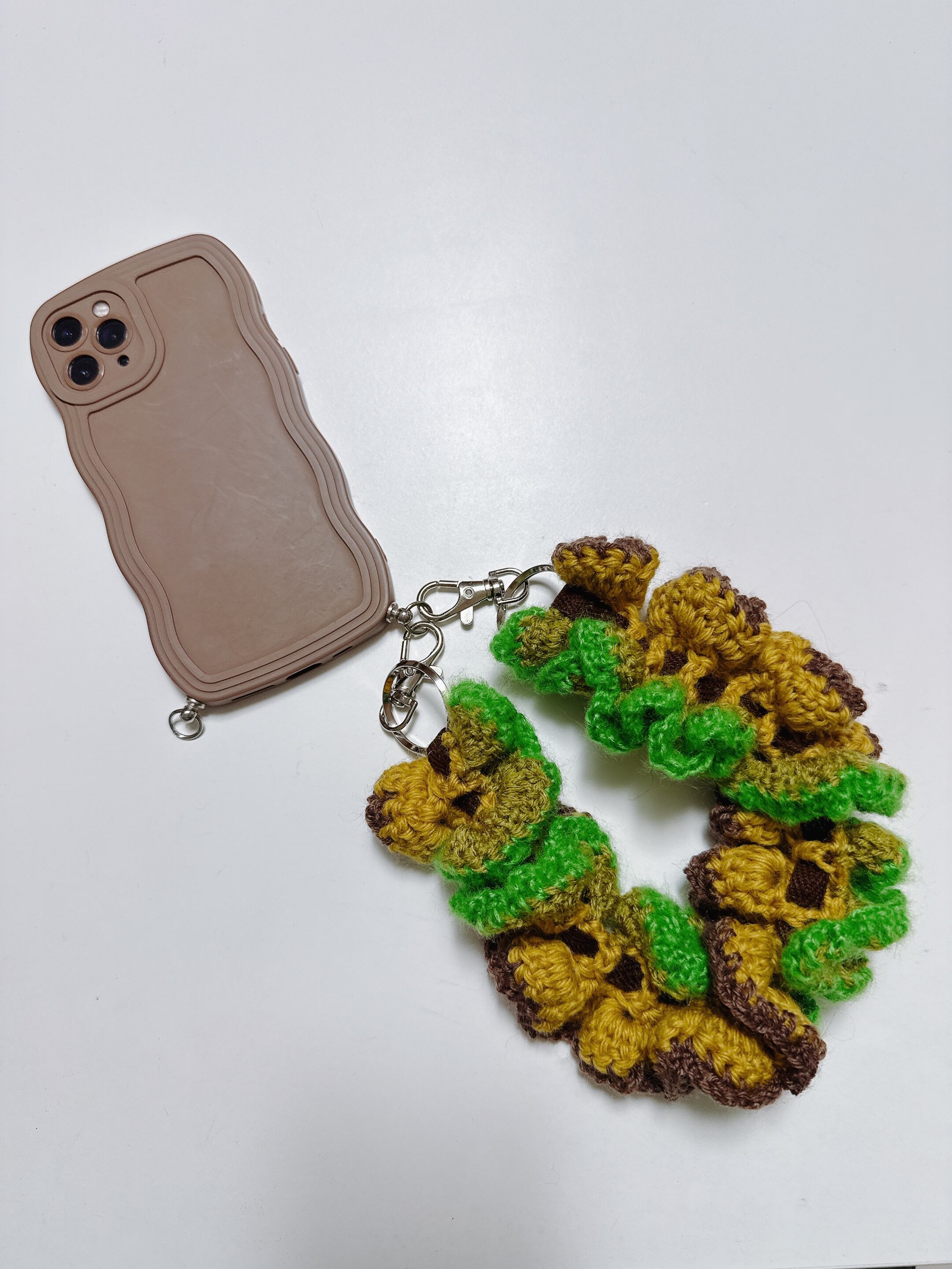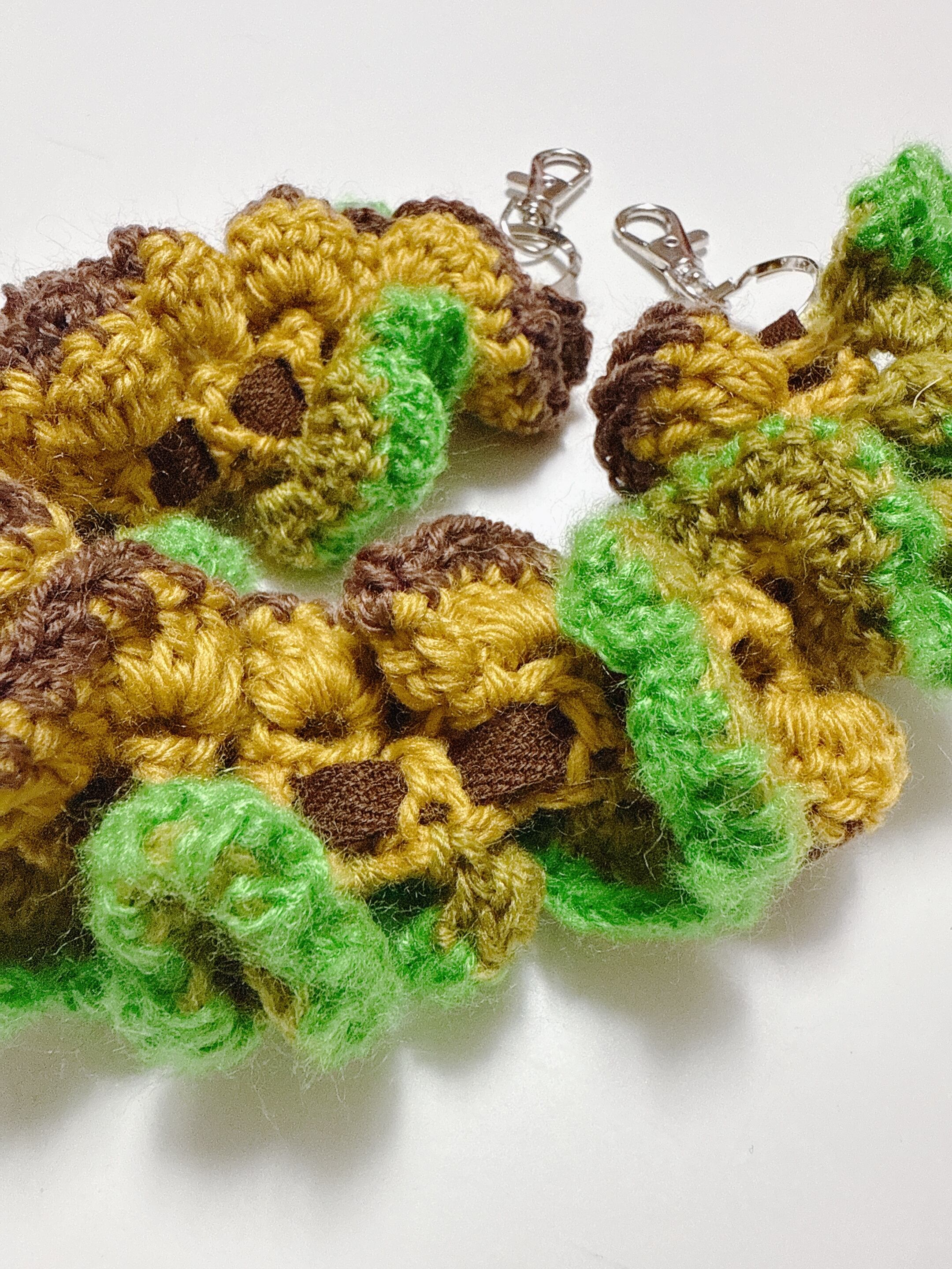 手編みのフリルストラップ(mini) yellow×green×brown
