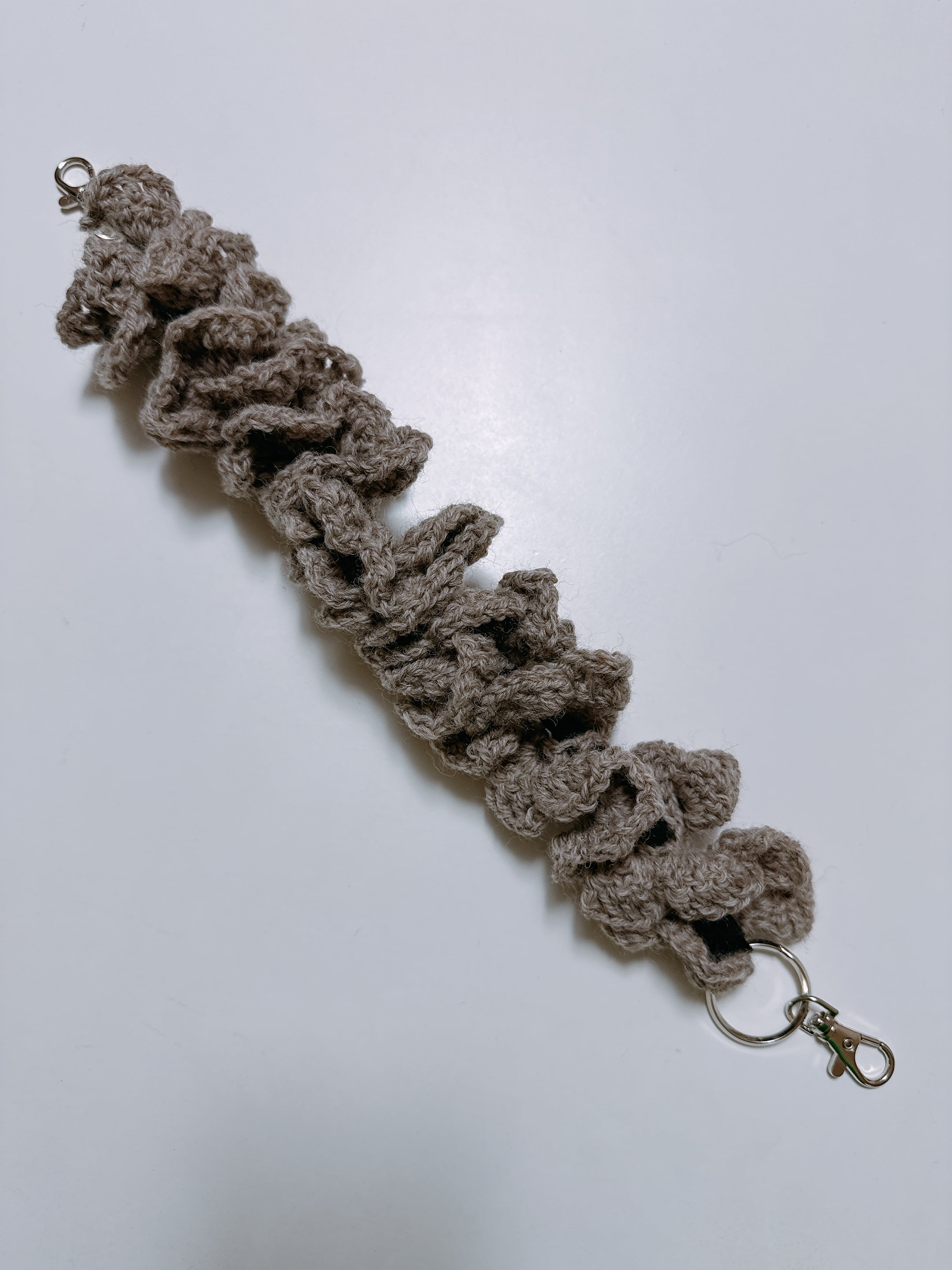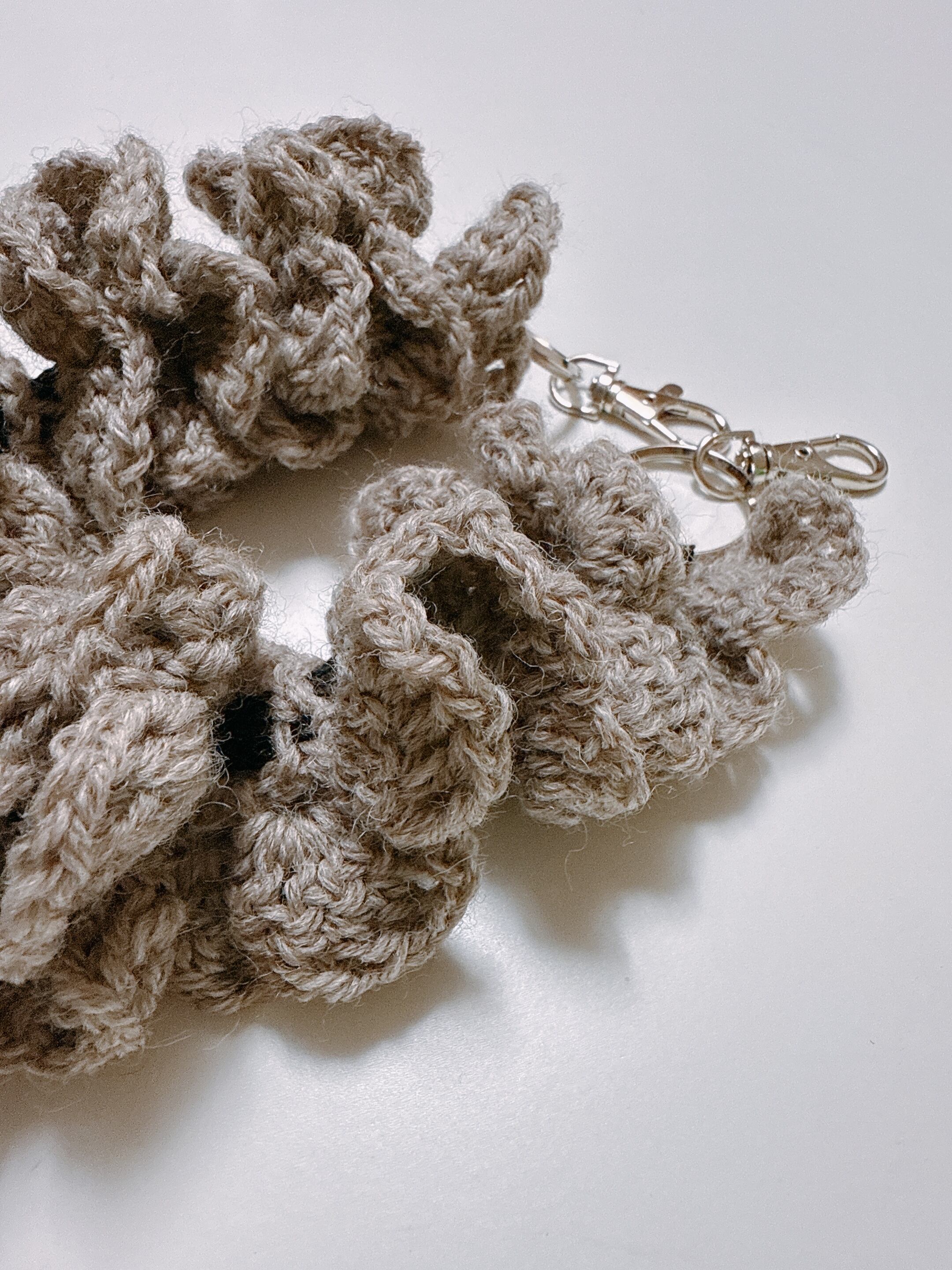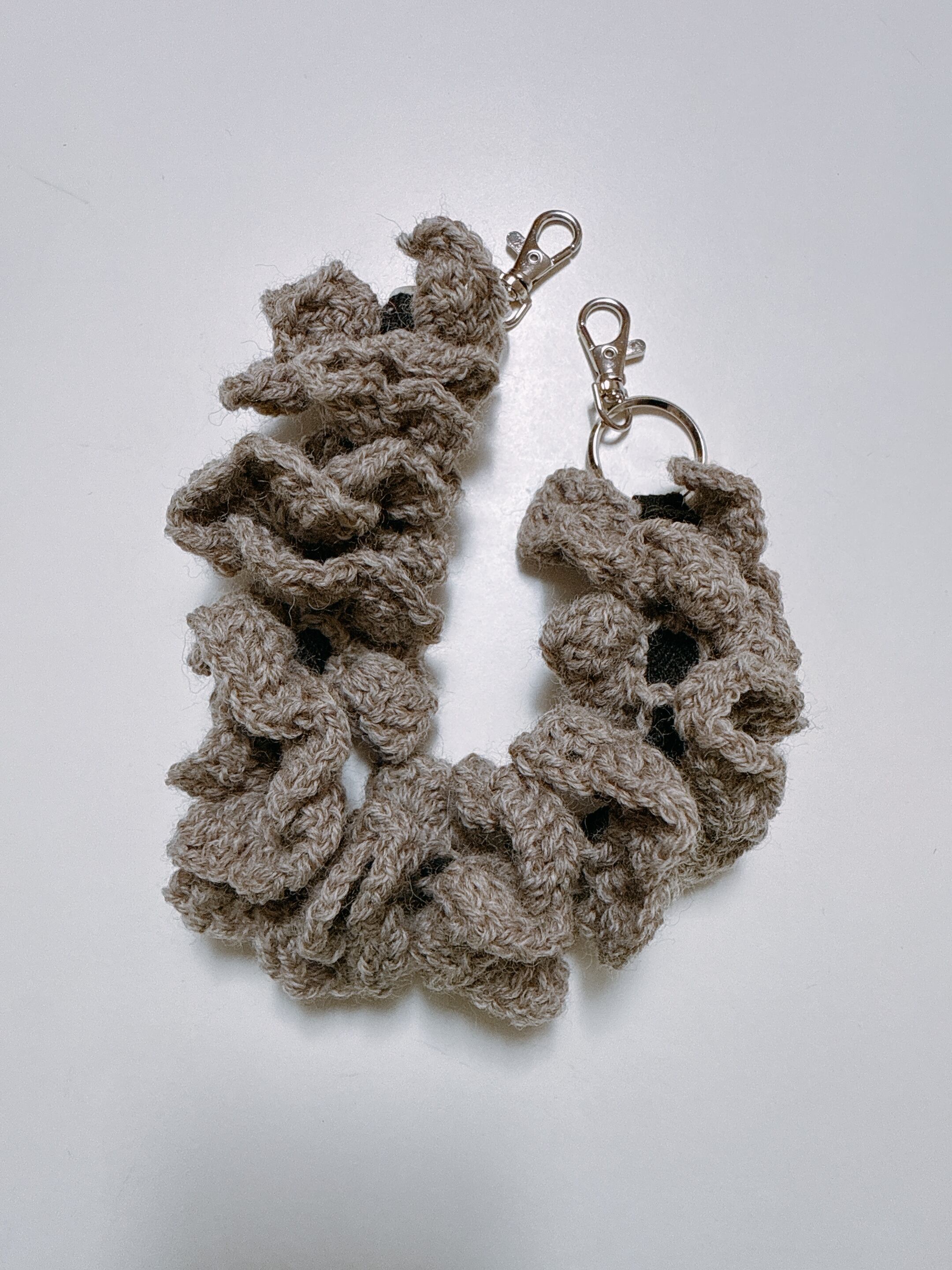 ボリュームたっぷりの手編みのフリルがポイントのフリルストラップ。